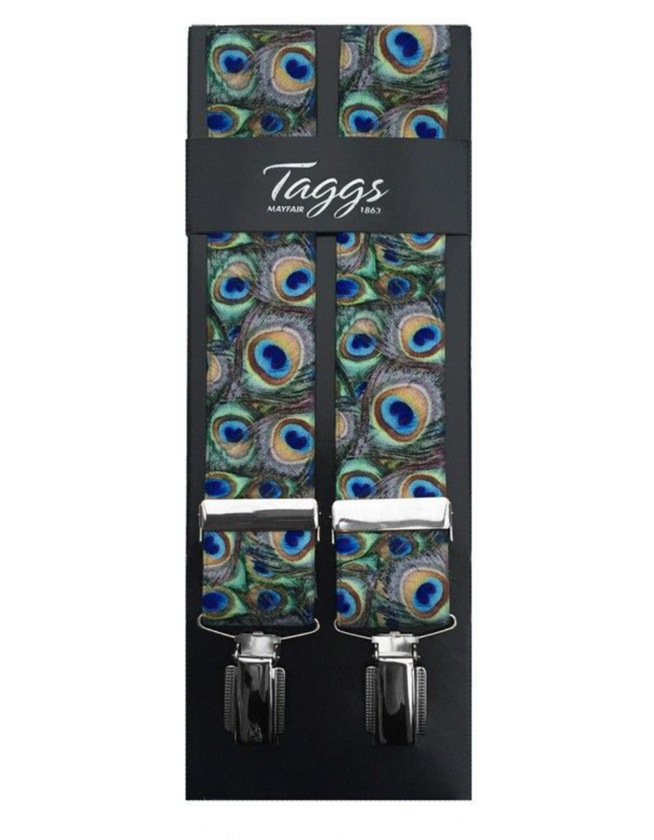 Bedrukt elastische bretels uit Engeland. Deze bretels hebben 2 clips voorzijde en 2 clips op de achterzijde. De bretels zijn 3,5 cm breed.
